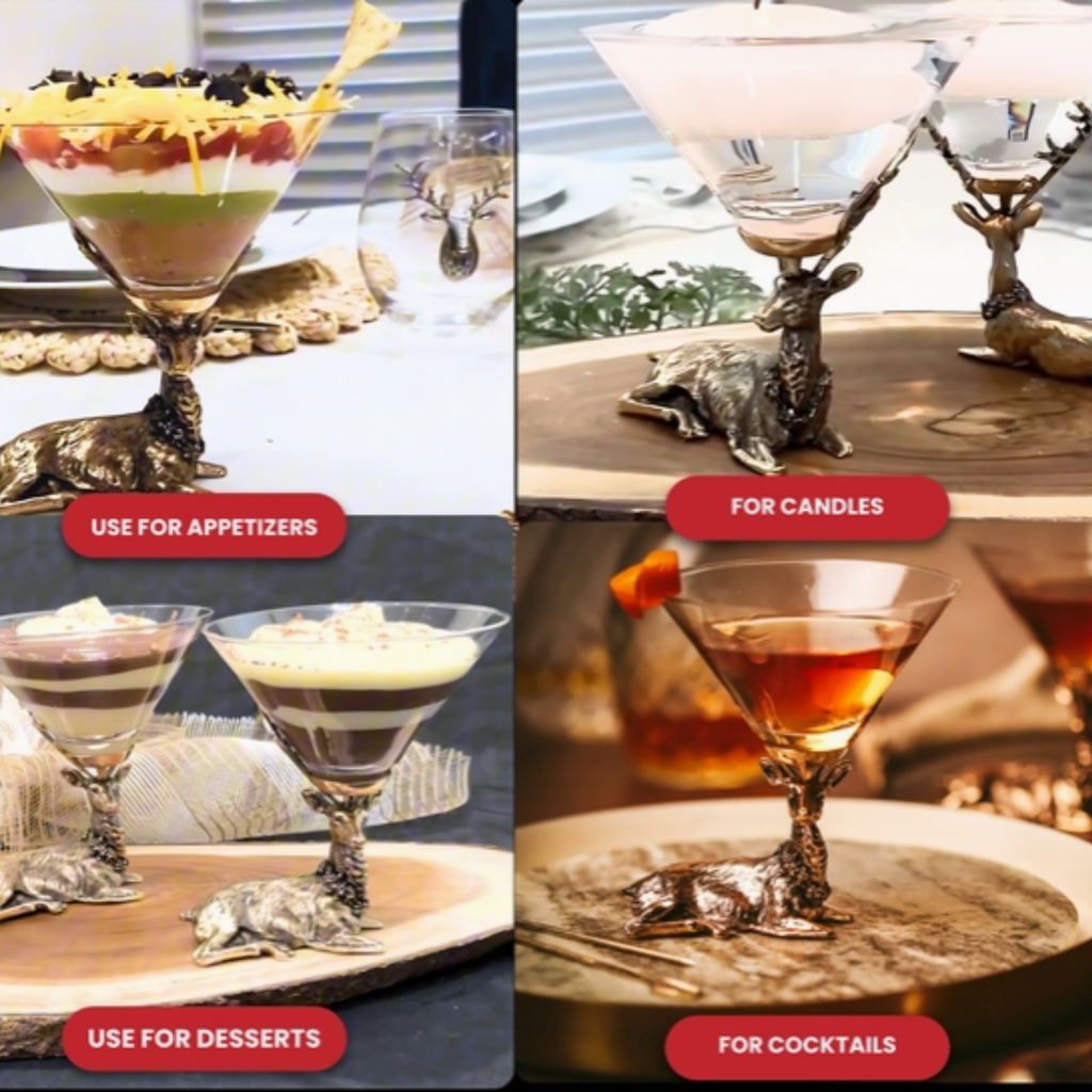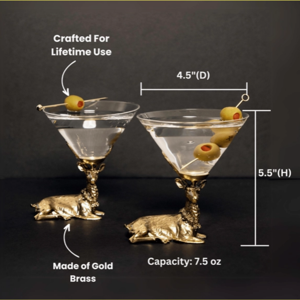 Elevate your barware with our stag martini glasses, where vintage charm meets rustic elegance. Featuring a detailed deer motif, these cocktail glasses are perfect for martinis, cosmos, and craft cocktails, but also double as dessert cups, appetizer holders, or even decorative candle holders.