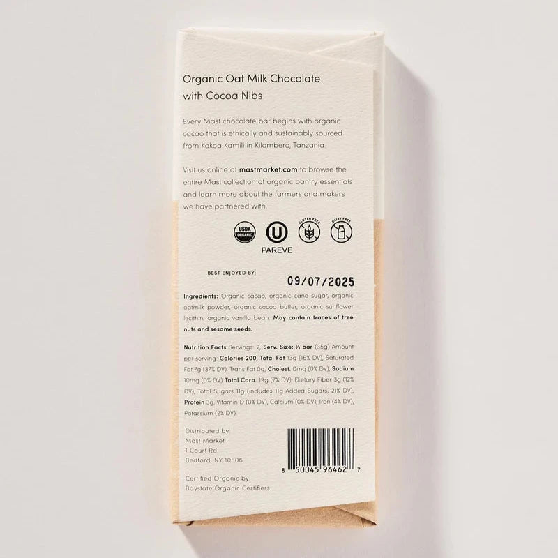 Mast Organic Oak Milk Chocolate with Cocoa Nibs